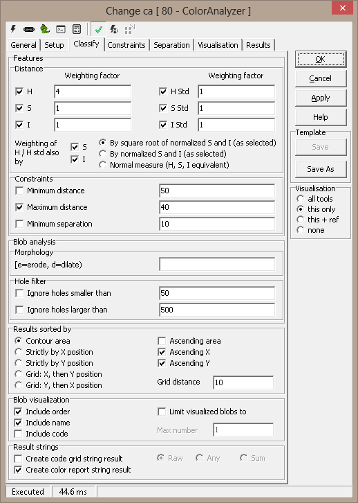 • Minimum Separation - the minimum separation between the best and the second best color for the color to be accepted