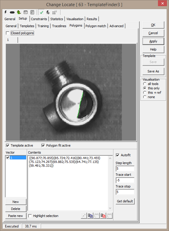Note 1: Polygon fit will only work when traceline