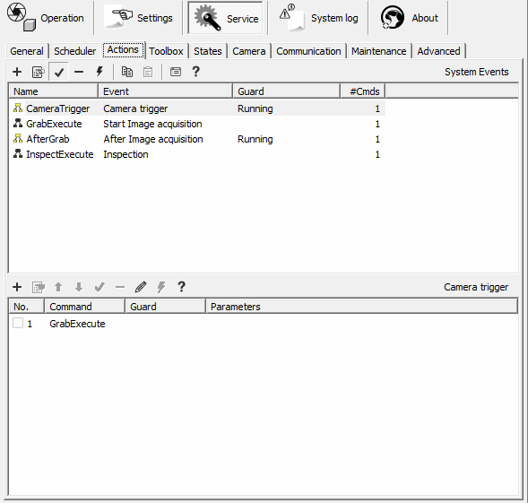 The Actions are configured under Service\Actions
