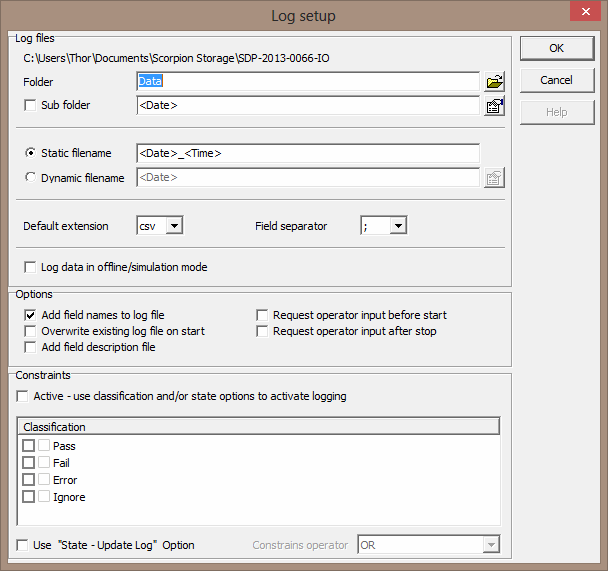 Data Logging Setup Dialog