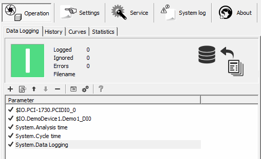The data logging has the following properties: