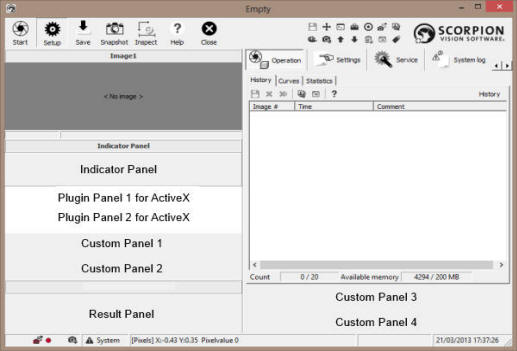 With Scorpion Vision Software 9.0 or later the Scorpion Plugins can be embedded into Custom Page or Custom Panels.