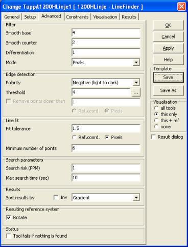 1200HLinje and the tool type LineFinder. The tool are synchronized